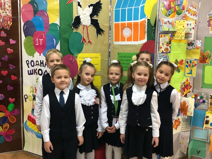 Сегодня наша школа была нарядная и красивая, ведь мы отмечали её день рождения! Учителя и ученики украсили ширмы, и коридор первого этажа...